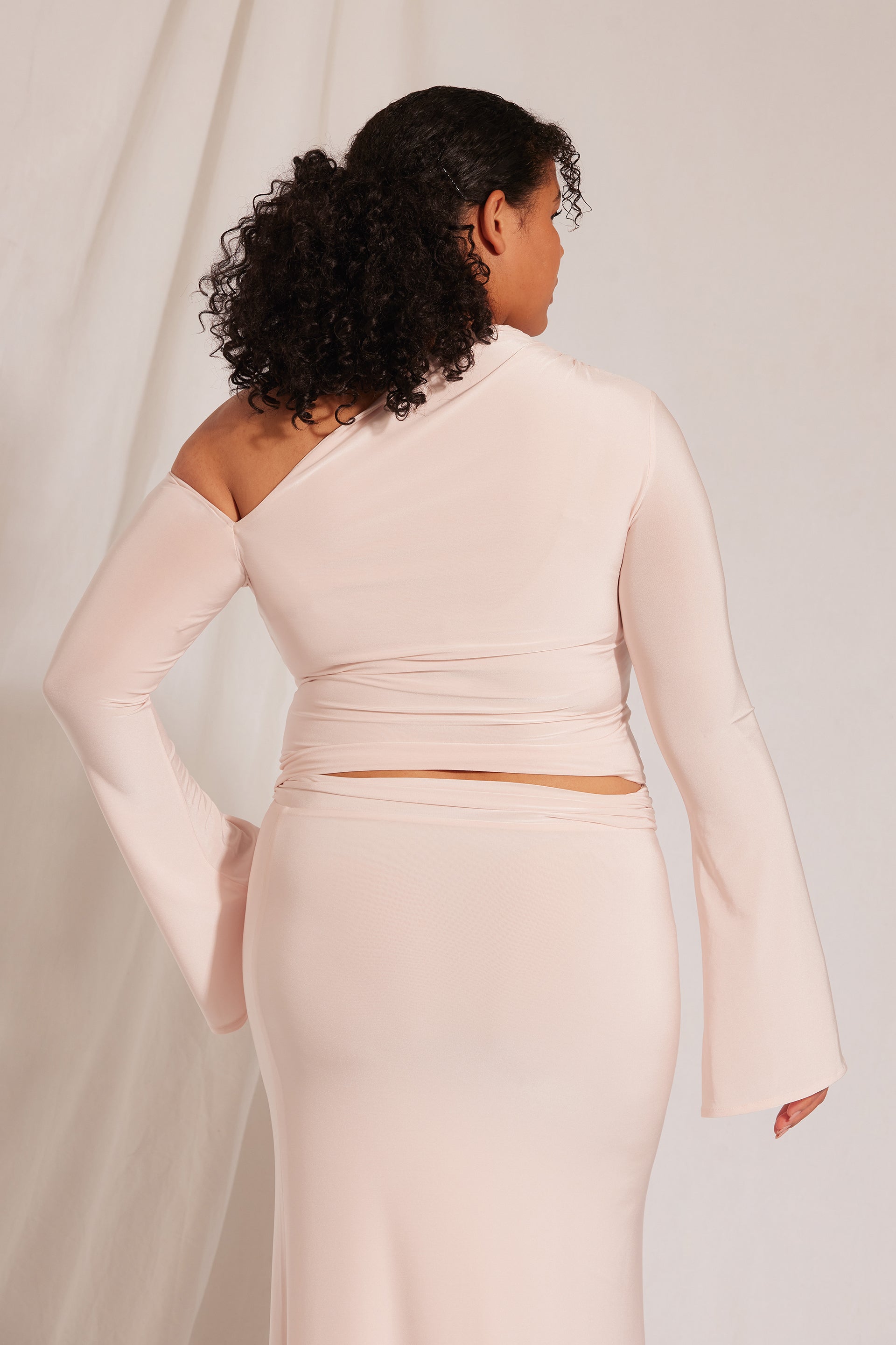 The Long Sleeve Top ANELA combines timeless elegance. The asymmetrical neckline is cleverly gathered on the side, giving the top a feminine silhouette.